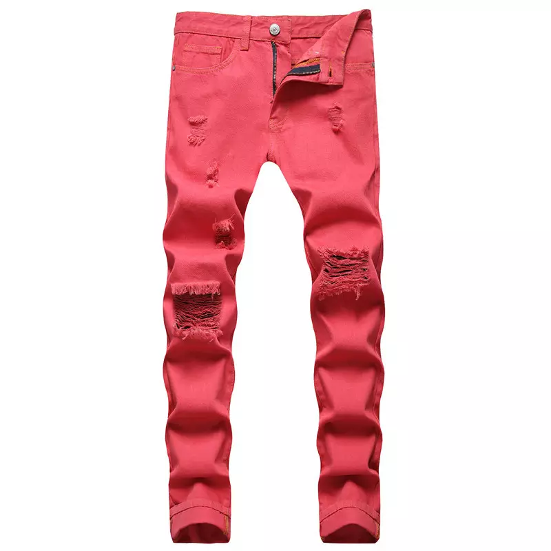 Men’s Casual Ripped Denim Jean Blue & Brown