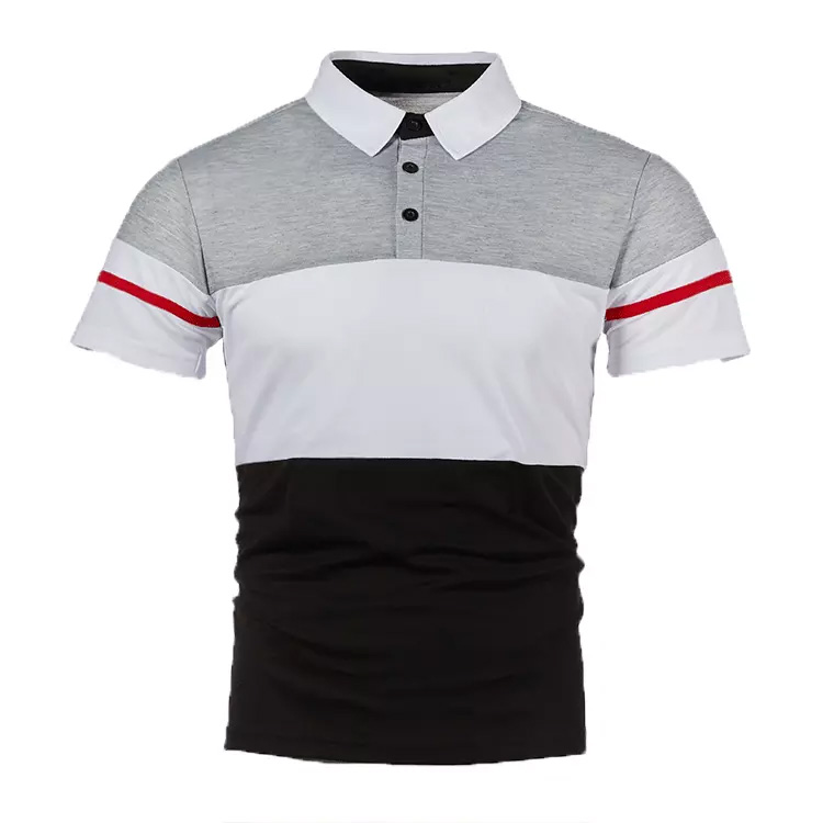 Men’s Fashion Stitching Polo Shirt Casual Short Sleeve Grey