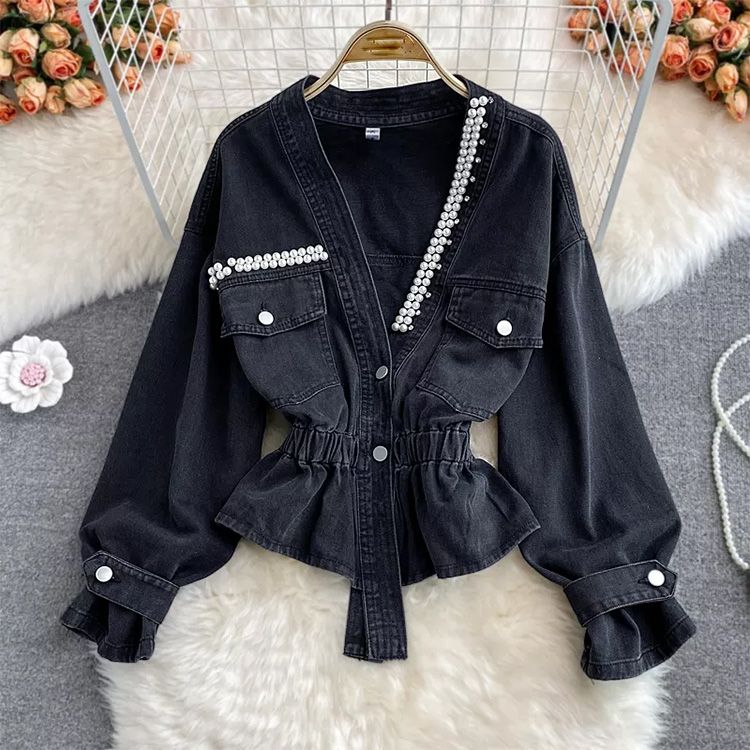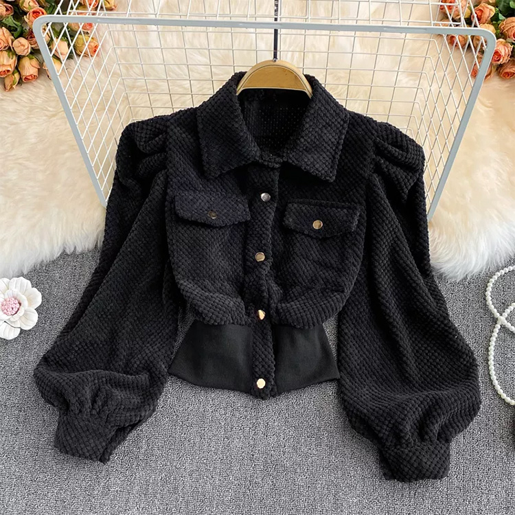 Women’s Elegant Lantern Sleeves Short Coat Black