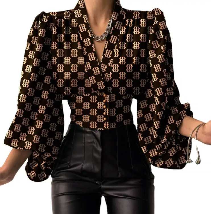 Women’s Blouses Lantern Sleeves Tops Black & Gold