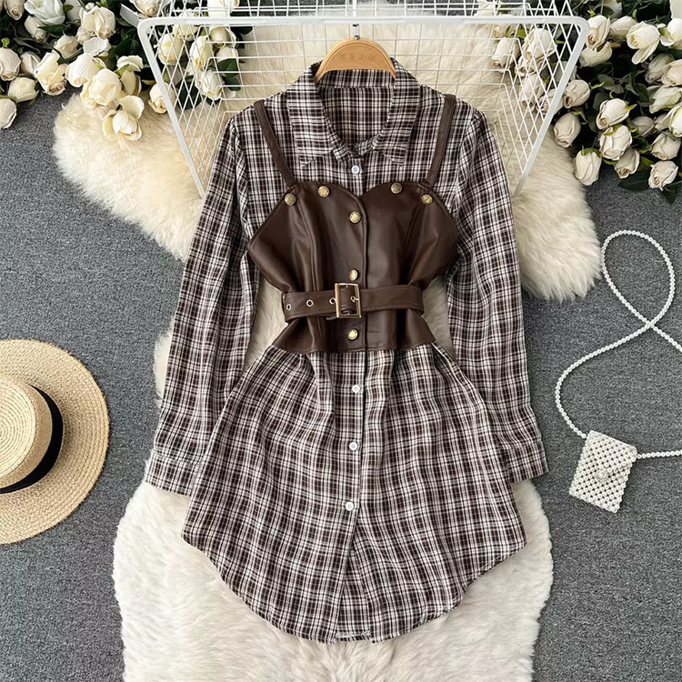 Women’s Leather Suspender Vest & Long Sleeved Shirt Brown