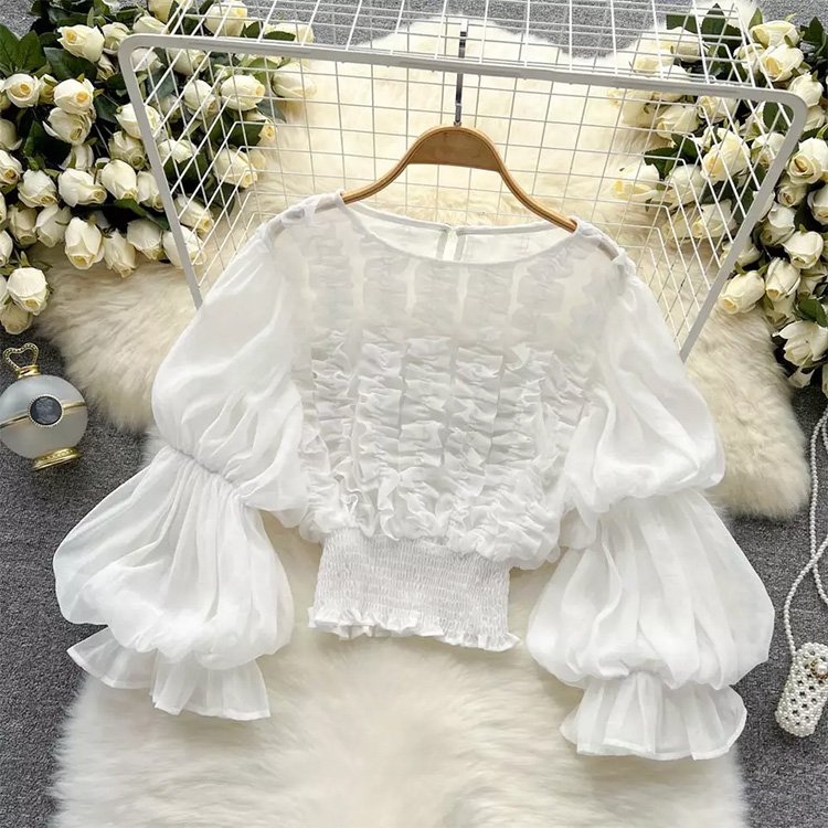 Women’s Ruffle Puff Sleeve Shirt-Blouse White