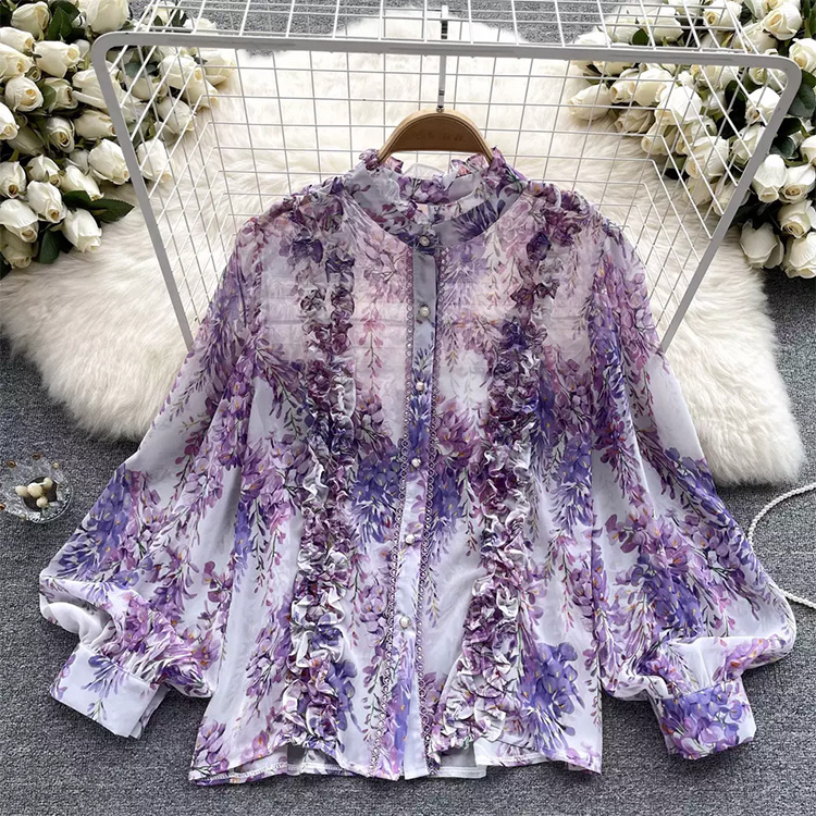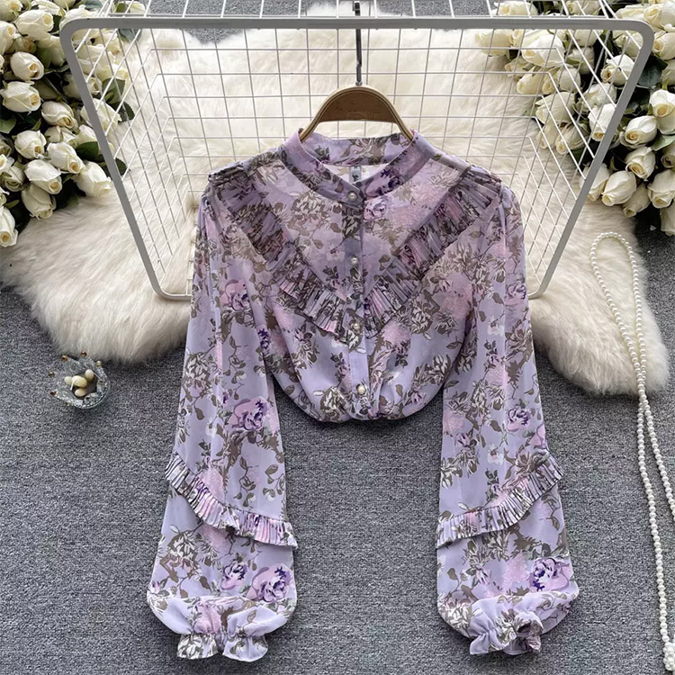 Women’s Floral Bubble Long Sleeve Blouse Purple