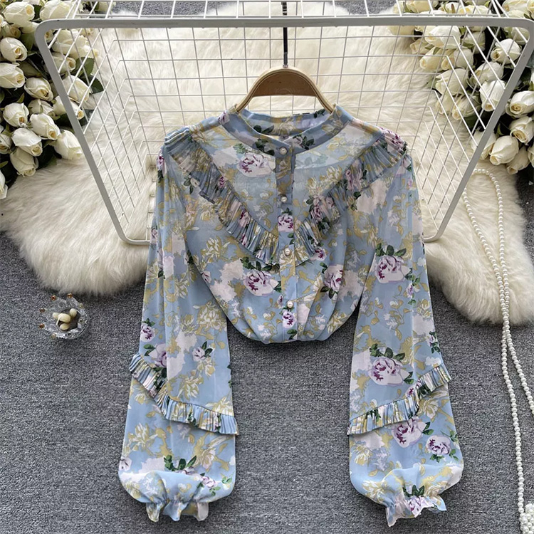 Women’s Floral Bubble Long Sleeve Blouse Blue