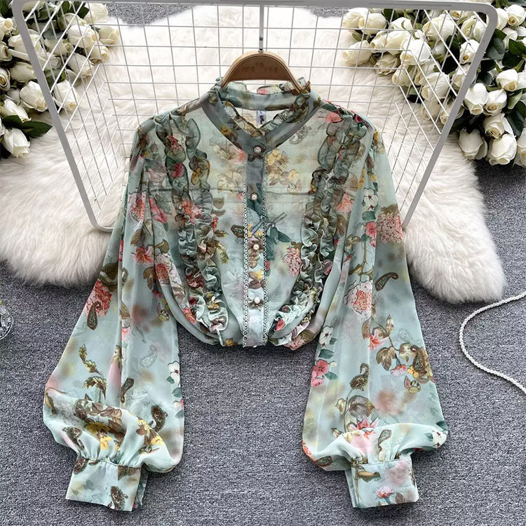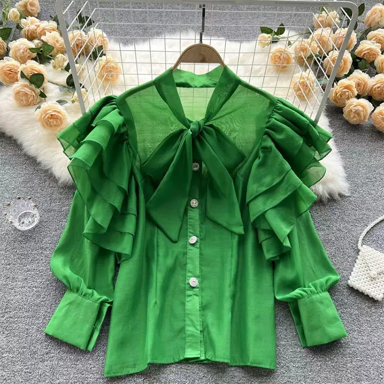 Women’s Ruffled Sweet Ties Loose Long-Sleeved Shirt Green