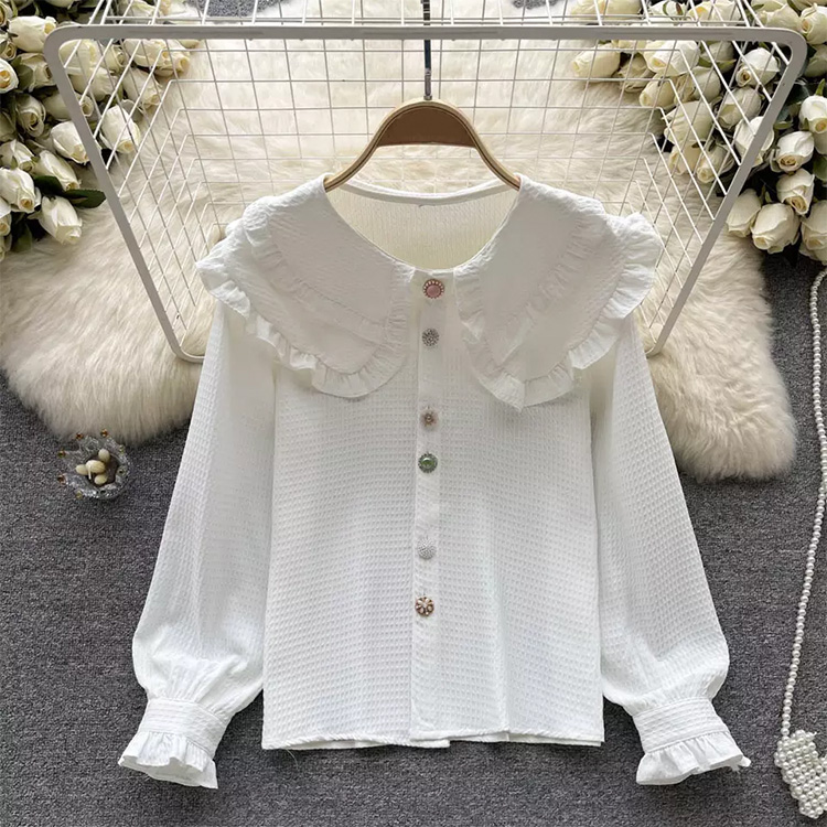 Women’s Lapel Collar Retro Shirt White