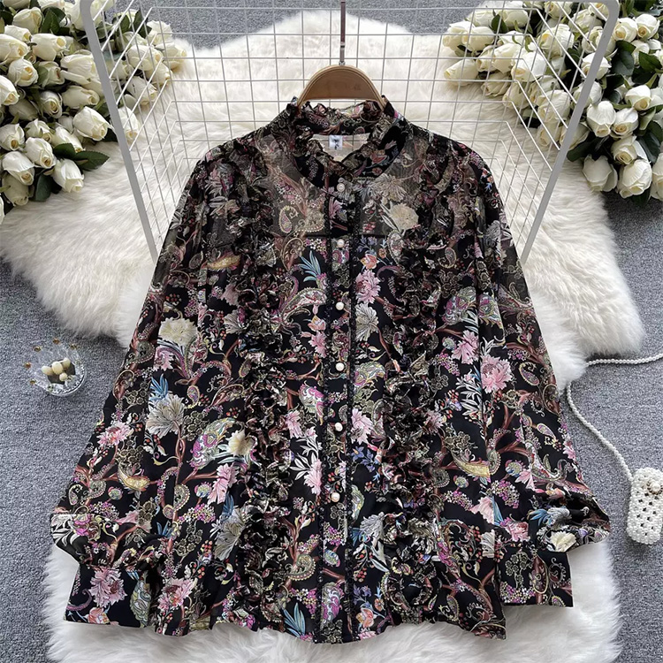 Women’s Floral Bubble Long Sleeve Blouse Black