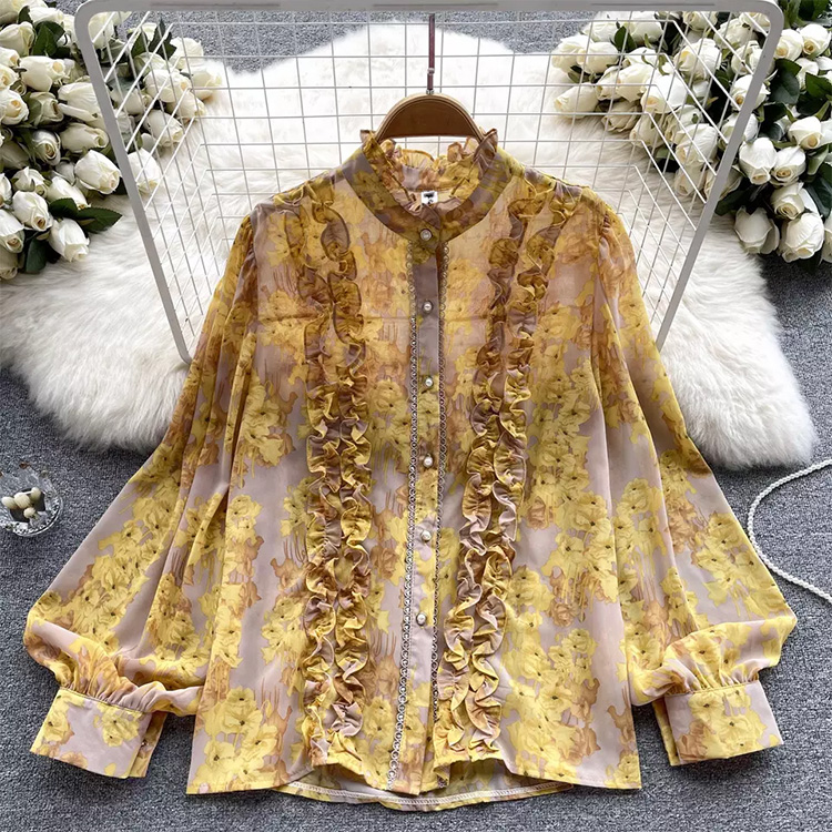 Women’s Floral Bubble Long Sleeve Blouse Yellow