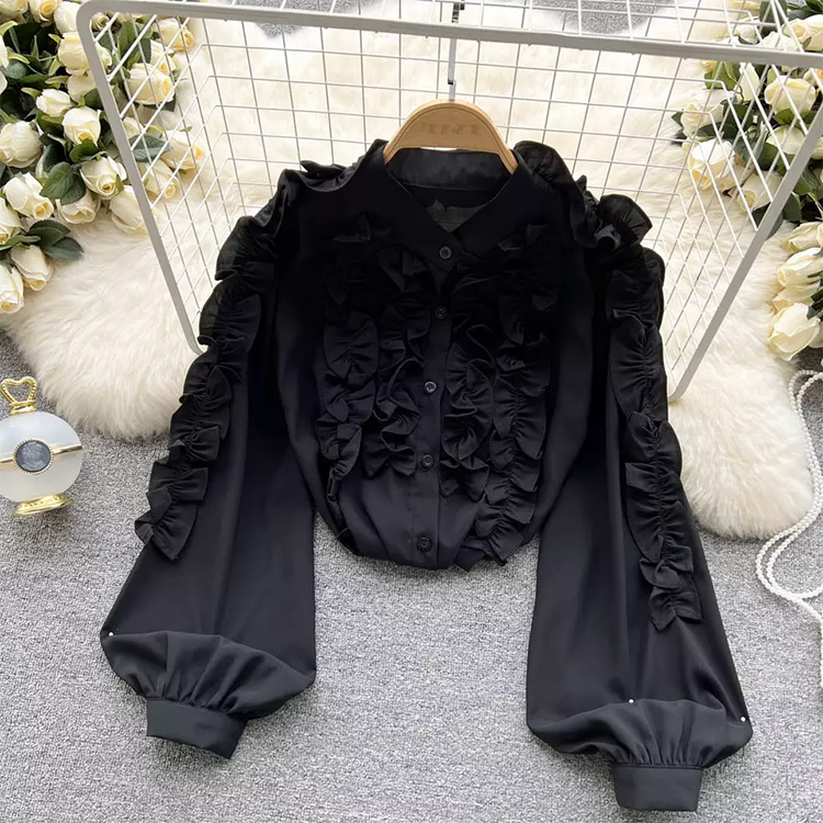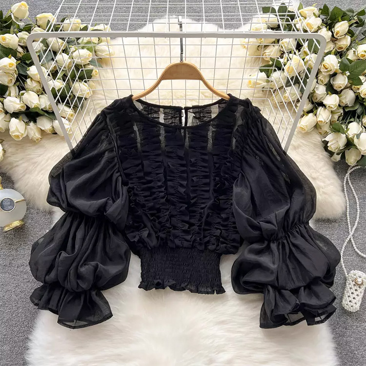 Women’s Ruffle Puff Sleeve Shirt-Blouse Black