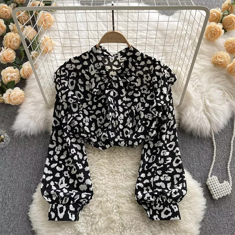 Women’s Vintage Loose Lantern Sleeves Blouses Black & White