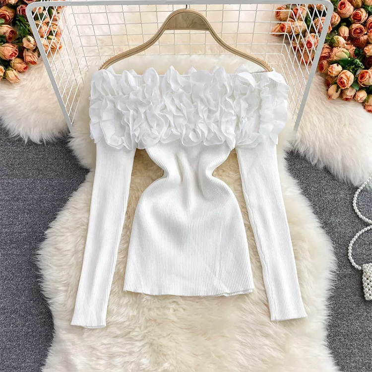 Women’s Vintage Ruffle Loose Long Sleeve Top White